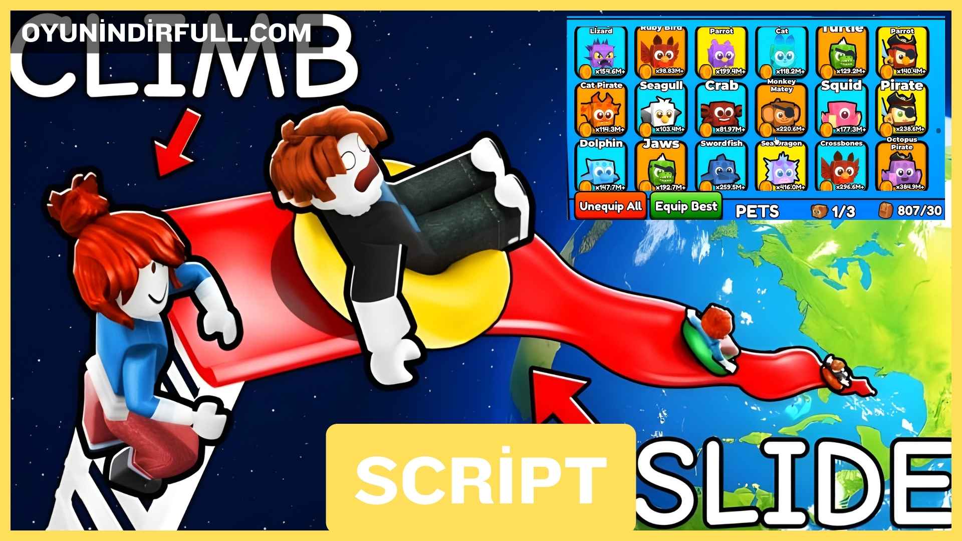 Climb and Slide Script, Roblox’ta “tırmanma + kayma + ödül toplama” mekaniğini birleştiren yenilikçi yapımlardan. Oyuncular, kuleler, merdivenler ve engeller aracılığıyla yukarı tırmanıyor, ardından eğlenceli kaydıraklarla aşağı kayarak ödüller topluyor. Bu dinamik ve hızlı tempolu oynanış, oyunu hem casual hem rekabetçi oyuncular için ideal kılıyor.